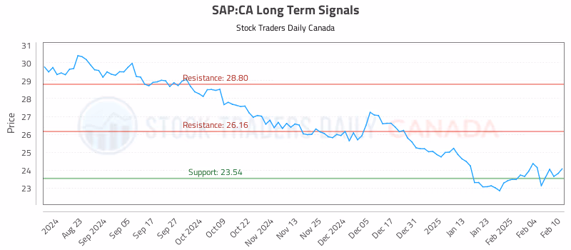 The data for Saputo Inc. (TSX: SAP) herein utilizes proprietary algorithms produced by Stock Traders Daily and refined since the turn of the century. Warning: This is a static report, the data below was valid at the time of the publication, but support and resistance levels for SAP change over time, so the report should be updated regularly. Real Time updates are provided to subscribers. Subscribers also receive market analysis, stock correlation tools, macroeconomic observations, timing tools, and protection from market crashes using Evitar Corte. Instructions: The rules that govern the data in this report are the rules of Technical Analysis. For example, if SAP is testing support buy signals surface, and resistance is the target. Conversely, if resistance is being tested, that is a sign to control risk or short, and support would be the downside target accordingly. In each case, the trigger point is designed to be both an ideal place to enter a position (avoid trading in the middle of a trading channel), and it acts as a level of risk control too. Swing Trades, Day Trades, and Longer term Trading Plans: This data is refined to differentiate trading plans for Day Trading, Swing Trading, and Long Term Investing plans for SAP too. All of these are offered below the Summary Table.