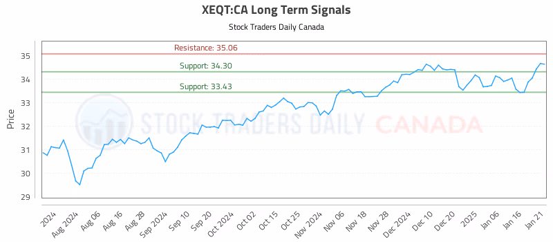 This stock trading blueprint for iShares Core Equity ETF Portfolio (TSX: XEQT) is produced by Stock Traders Daily's cutting-edge AI, perfected over two decades to identify the best trading strategies for individual stocks, indices, ETFs, options, and futures. The report focuses on optimizing trading activities for iShares Core Equity ETF Portfolio through effective risk management practices. Disclaimer: This is a static report; support and resistance levels may vary and should be updated regularly. Subscribers benefit from real-time data updates, comprehensive market analysis, correlation tools, macroeconomic insights, timing tools, and Evitar Corte crash protection. Guidelines: Apply technical analysis to determine optimal buy and sell points. When XEQT approaches support levels, consider buying, and when nearing resistance levels, consider selling or managing risk. Detailed trading plans for Day Trading, Swing Trading, and Long-Term Investing are outlined below the Summary Table.