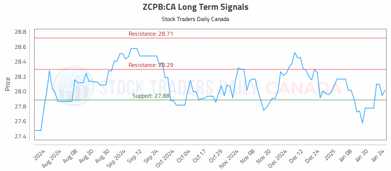 With an objective approach to BMO Core Plus Bond Fund (TSX: ZCPB), Stock Traders Daily attempts to go with the flow of the market by utilizing a combination of market analysis and stock analysis. Warning: This is a static report, the data below was valid at the time of the publication, but support and resistance levels for ZCPB change over time, so the report should be updated regularly. Real Time updates are provided to subscribers. Subscribers also receive market analysis, stock correlation tools, macroeconomic observations, timing tools, and protection from market crashes using Evitar Corte. Instructions: The rules that govern the data in this report are the rules of Technical Analysis. For example, if ZCPB is testing support buy signals surface, and resistance is the target. Conversely, if resistance is being tested, that is a sign to control risk or short, and support would be the downside target accordingly. In each case, the trigger point is designed to be both an ideal place to enter a position (avoid trading in the middle of a trading channel), and it acts as a level of risk control too. Swing Trades, Day Trades, and Longer term Trading Plans: This data is refined to differentiate trading plans for Day Trading, Swing Trading, and Long Term Investing plans for ZCPB too. All of these are offered below the Summary Table.